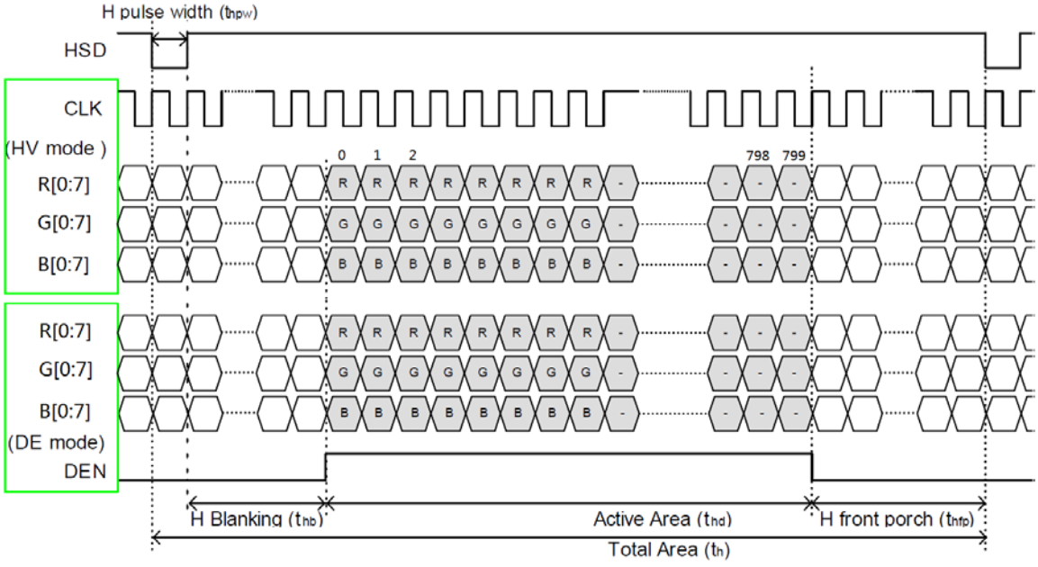 从图中可以看出,DE和HV模式,时序基本一样,DE模式需要提供DE信号(DEN),而HV模式,则无需DE信号。
