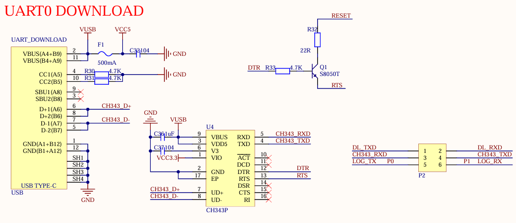 从上图可以发现,T5AI开发板的下载口与日志打印口共用一个USB转串口芯片,需要我们在P2端口进行选择,为了方便下载与调试,用户可购买USB转串口模块,一路用于下载,另一个用于日志查看。