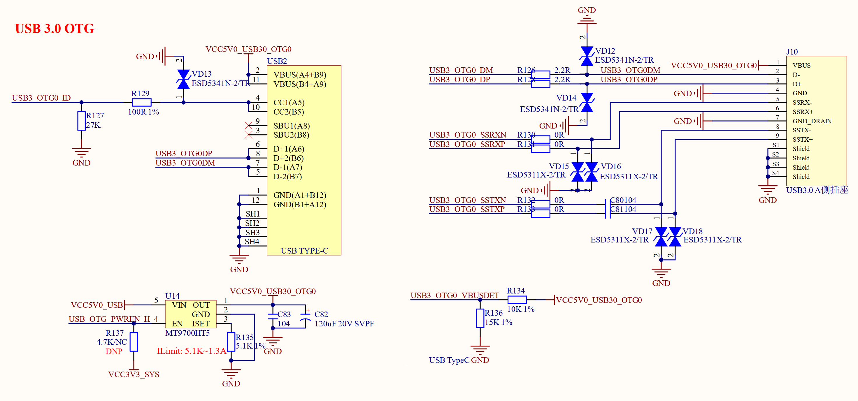 USB OTG既可以做从机,也可以做主机,ATK-DLRK3568开发板的USB OTG电路同时给出了Type-C从机接口和USB HOST主机接口,方便大家进行USB 3.0 OTG的主从机测试。