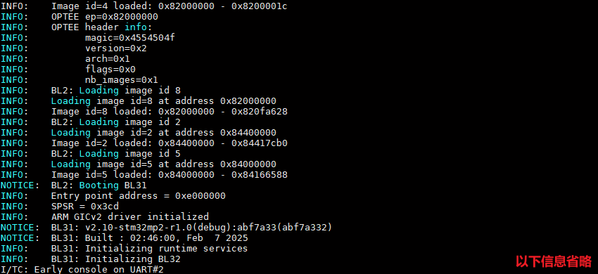 开发板从eMMC模式启动后,串口终端打印系统的运行信息,我们可以启动开发板(开发板已启动的话可以重启开发板),观察到串口打印如下。